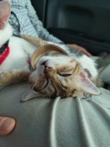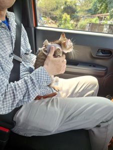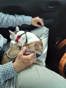 最初は、私の運転で、りくをバケットに、くぅを妻が抱っこして移動する予定でした。