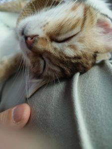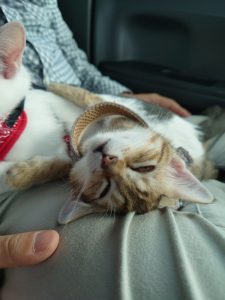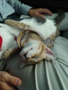 しかし、なかなか落ち着いてくれず。妻に運転を変わってもらい、私がくぅとりくをなだめることに。