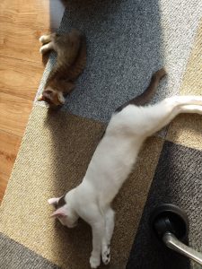 HOME > 日常 > 日常遊び疲れての昼寝 7月 30, 2023 朝から映画を見に行ったので二人はお留守番でした。くぅは部屋で、りくはゲージでずっと寝てたようです。14時くらいに帰ってきまして、それに合わせて二人とも起きてきました。た~~~くさん追いかけっこした後は二人同時にパタリ…。 遊び疲れて寝てしまいました。これで夜の運動会は中止になってほしいのですが…。寝てる姿もかわいいですね!一瞬戦いがはじまるも直後に休戦からの仲良さそうに睡眠関連 Post Share Pocket Hatena LINE URLコピー -日常