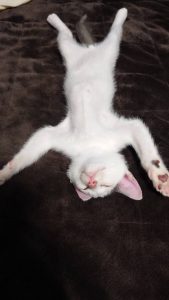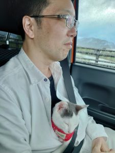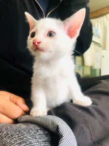 来たばかりのころは、こうやって膝の上で休んでいることが多かったです。