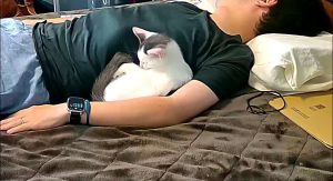 でも時間が経つと…。また膝の上に戻ってきてしまうのでした。