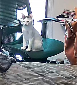 1人でお留守番のときは、こうやって椅子の上でたたずんでいましたね。