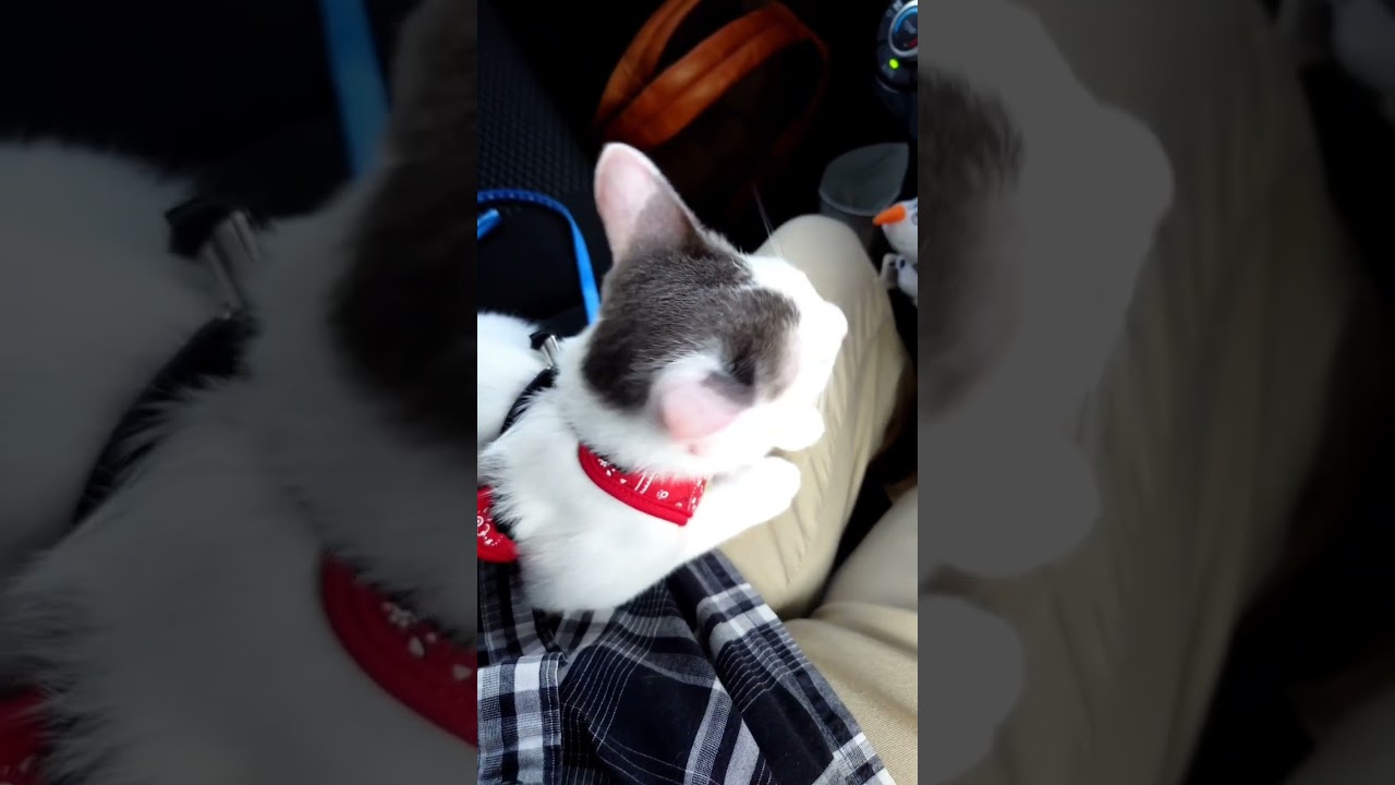 移動のために車に連れて行くとくぅもりくもおとなしかったので、後部座席にキャリーケースを置いて、