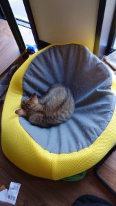 くぅとりくのために部屋にはお昼寝用として複数のクッションを配置しています。