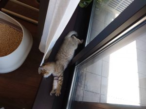 りくは、窓側の隙間で日も入って暖かくなっているところです。