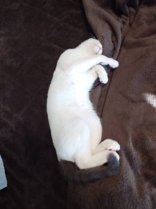 他には、くぅはお布団の上です。毎日一緒に寝てくれます。